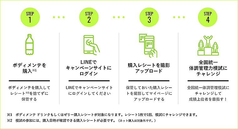 大塚製薬「ボディメンテ ドリンク」「ボディメンテゼリー」を購入したレシートで、この体調管理力模試に挑戦できる。