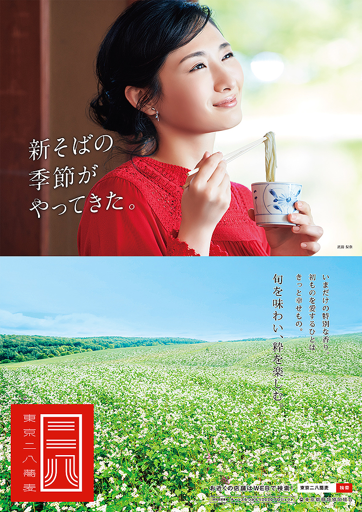 実は武田梨奈、東京二八そばのブランドアンバサダーに就任し、10月1日から「この時期だから味わえる旬のおいしさ」「今季収穫の新そばによる東京二八そば」をこうしたキービジュアルで、京浜東北線・中央線・千代田線、そして東京二八そばブランドの生そば店561店でポスターを掲出し紹介しているというわけ。
