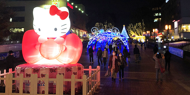 イルミ点灯は16時30分~22時30分。サンリオキャラクターイルミネーションは21時30分まで。2021年1月11日まで毎日開催中。