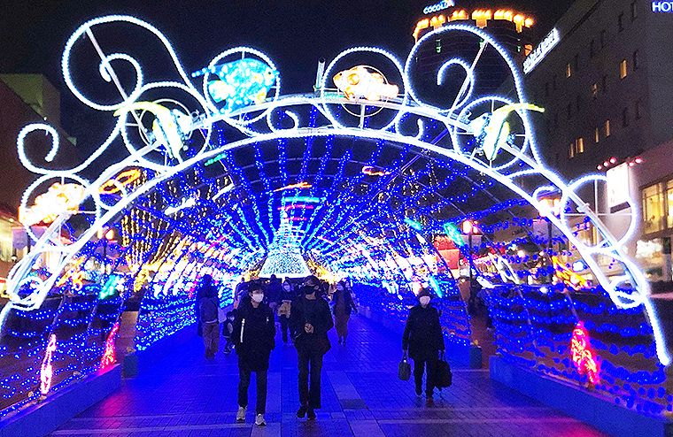 ことしも、多摩センター駅前 パルテノン大通りを中心に「多摩センターイルミネーション2020」が灯り始めた。