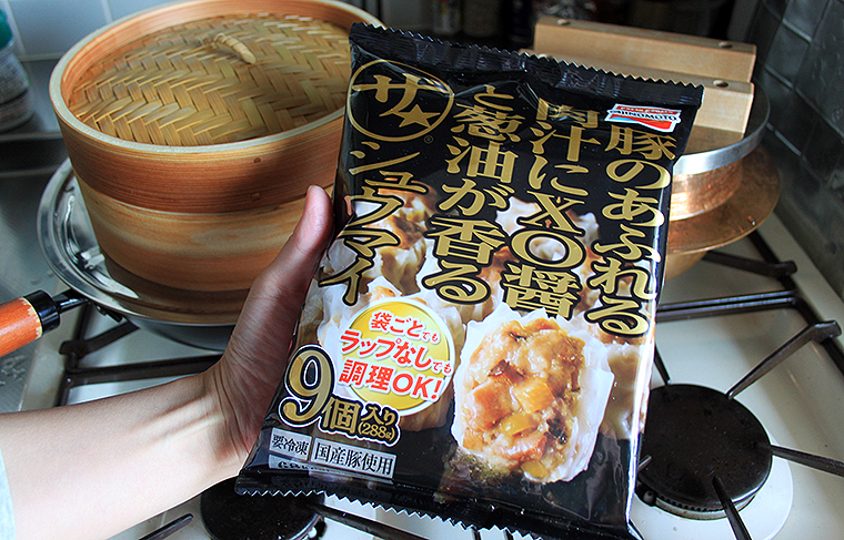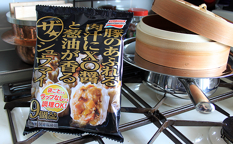 「ザ★シュウマイ」パッケージの裏には、電子レンジでチンする調理法が記されているけど、ここをあえてひと手間かけてセイロで蒸してみる。