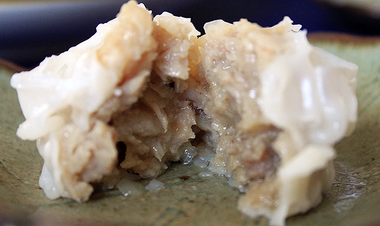 湯気で蒸されたザ★シュウマイは、適度に水分を含み、艶々(つやつや)でしっとり、皮がぷりぷりと立っている。