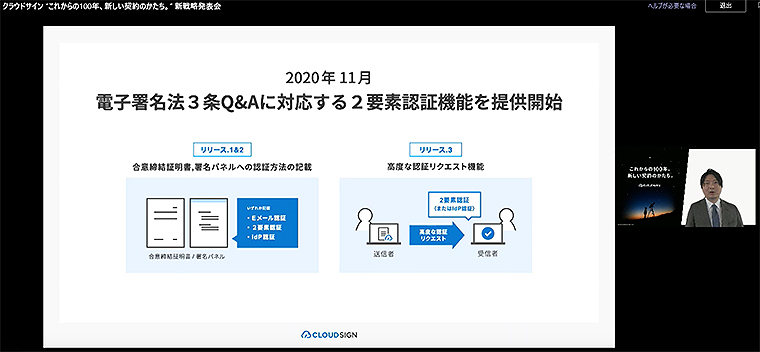 「これが実現したのも、多くの企業がクラウドサインを使い、スピーディーに契約締結を完了できる利便性と、証拠力を担保する機能性が評価された結果」