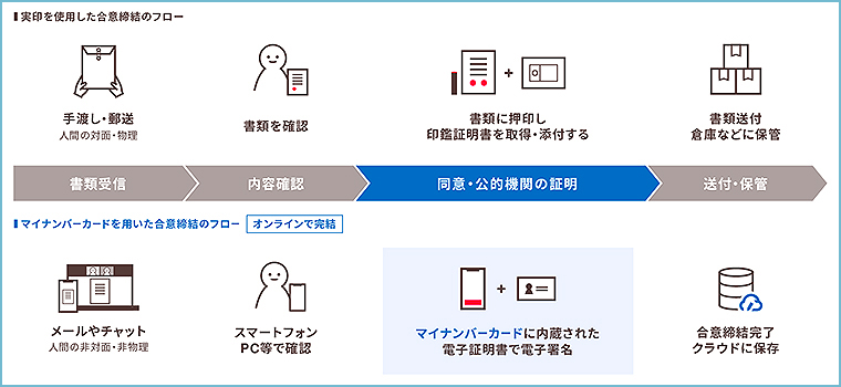 またクラウドサインは、マイナンバーカードに内蔵された電子証明書による電子署名に対応し、印鑑証明など公的機関の証明や実印が必要な個人との契約締結を、クラウドサインにより電子化できるようにする。
