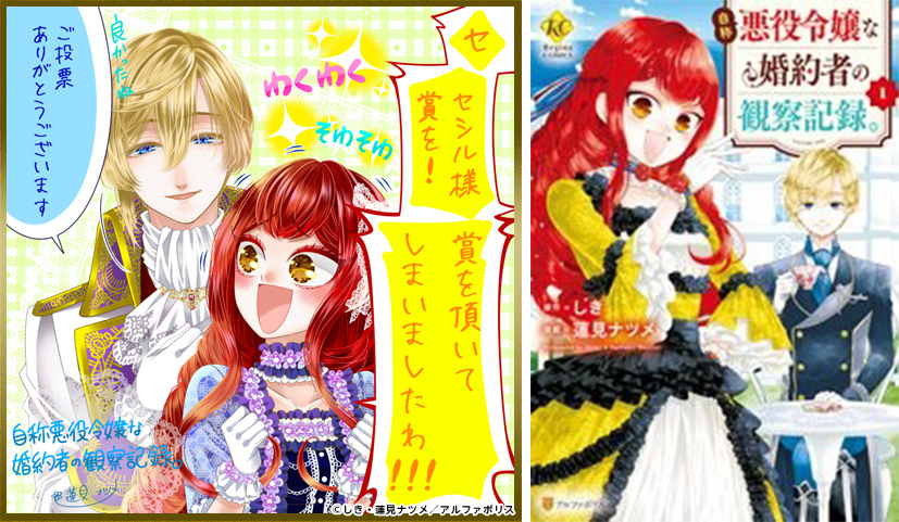 受賞コメント:(原作 しき)この度は素敵な賞を頂き有難うございます。Web連載から書籍化、コミック化へと至り、このような賞まで頂けた事、とても嬉しく思います。蓮見先生や出版社の方々はもとより応援して下さる皆様のお陰です。有難うございます。(作画 蓮見ナツメ)新たに設けられた異世界部門での初の受賞作になれたこと、とても嬉しいです。沢山の応援をありがとうございました!