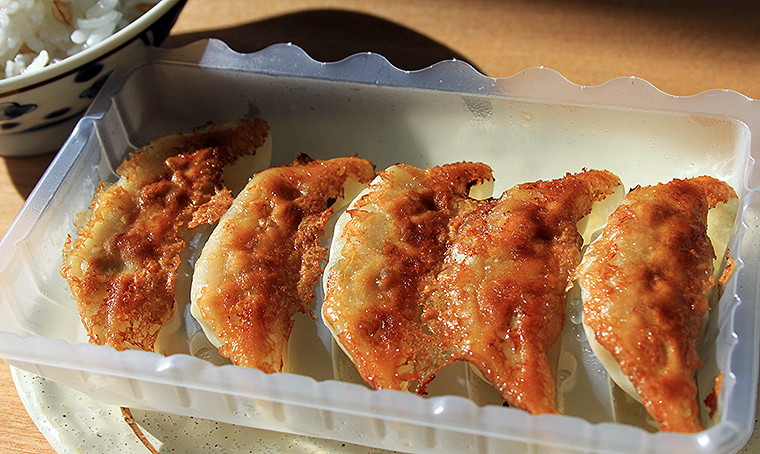 実際に電子レンジでチンして食べてみると、フライパンで焼いた焼き餃子にかなりちかい! 皮の羽根や焦げ目もあって、相当リアル。これが3分でできるとは……。