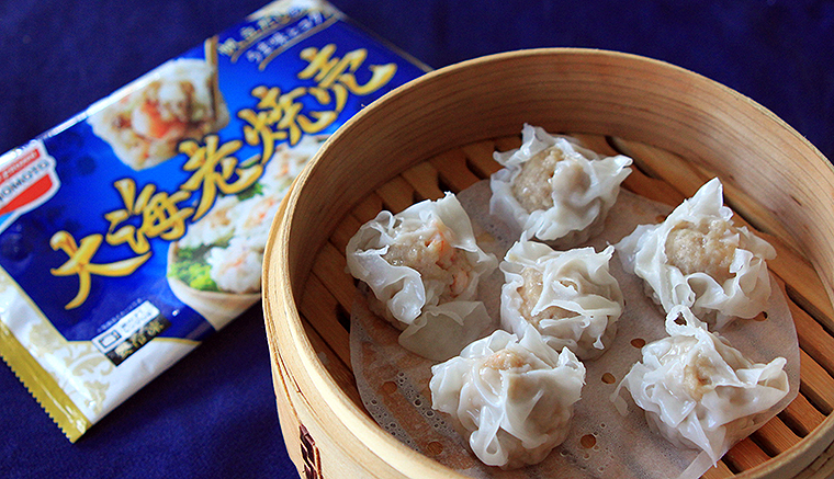 レンジでチンでOKだけど、よりおいしく!ってことで、せいろで蒸して食べてみると……ジューシーな豚肉に大ぶりのエビがゴロっ。リッチな食感と味は、まさに名店の味と同レベル!