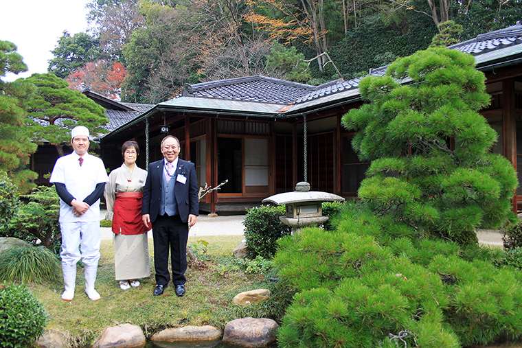「日本最古の美肌の湯」として伝わる玉造温泉。その老舗旅館「長楽園」を支える川崎祐嗣さん、桜井直美さん、高永佳明 支配人は、生まれも育ちもここ島根。