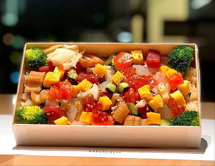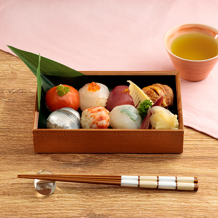 かわいらしいひと口サイズの手まり寿司をBluefin by UORIKIオリジナルBOXに詰め込んだ品。旬の食材で春の訪れを感じてみて。