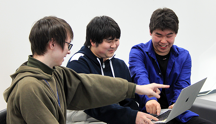 左から、小林遼平さん、磯田ショーン佳宏さん、小銭勘太さん。3人とも、玉川大学 工学部 情報通信工学科の1年生(新2年生)。