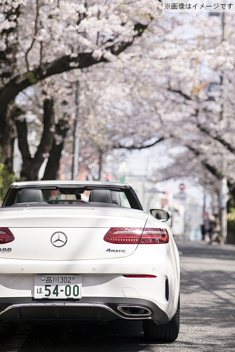 今回、メルセデス・ベンツ「さくらクルーズ」で乗れるメルセデス車は、「華やかさと極上の快適が調和する」といわれる人気のカブリオレモデル(オープンカー)『E 450 4MATIC Cabriolet Sports』『E 300 Cabriolet Sports』。