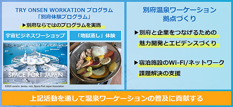 宿泊費をビッグローブが負担する「TRY ONSEN WORKATIONプログラム」のなかの別府体験プログラムは、「宇宙ビジネスワークショップ」と「地獄蒸しによるヘルシー食体験」をセットに。