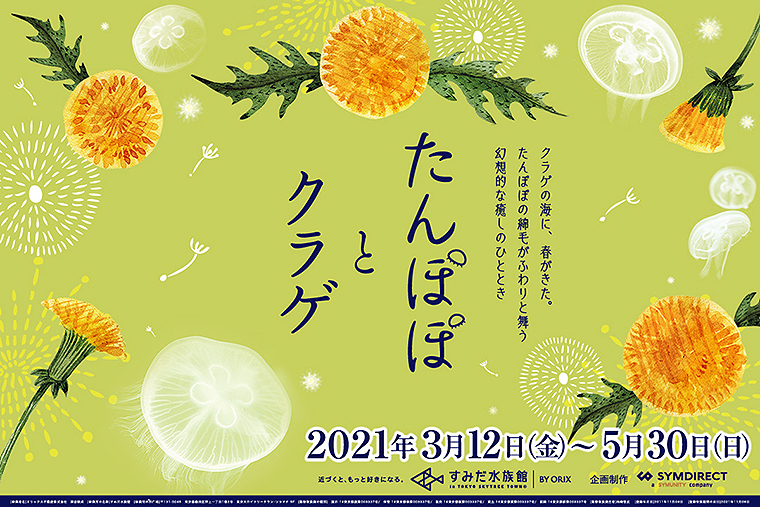 「これまで冬の澄んだ海原を表現していたクラゲの海に、春が訪れました。たんぽぽの綿毛がふわりと舞ういやしの空間を、お楽しみください」(すみだ水族館)