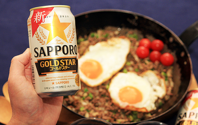 ハードロックカフェ東京のフィリピン料理フェアで初体験したローカルフード「シシグ」を再現した、シシグ風の青唐辛子入りピリ辛エスニックとも、この「サッポロ GOLD STAR」はガッチリ合う!