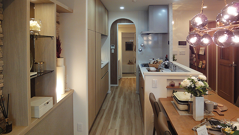 ポラスのマンションの特長のひとつ、『ピアキッチン』(実用新案取得済)も注目。