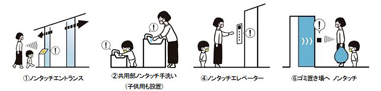 今回、中央住宅がめざしたのは、コロナ禍で求められる新しい生活様式に応え、「さわらない・もちこまない新発想で家族を守る」という新しい集合住宅。