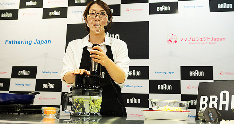 ブラウンハウスホールド製「マルチクイック 7 ハンドブレンダー MQ7085XG」を使い、ABC Styleと共同開発したつくり置き時短レシピなども紹介した。