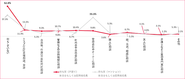 ◆近隣トラブルが起きても約5割が「何もしない」、分かりやすい相談先が少ない戸建て居住者があきらめる傾向に