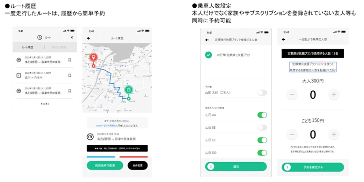 ルートの選定にはAIを活用し、出発地から目的地まで効率よく移動。サブスクサービスだから、月に何度利用しても良く、また利用者同士で便利な乗降ポイントを提案するなどしてサービスをブラッシュアップすることもできる。買い物や子供の習い事、通院やちょっとしたお出かけに使えそうだ。