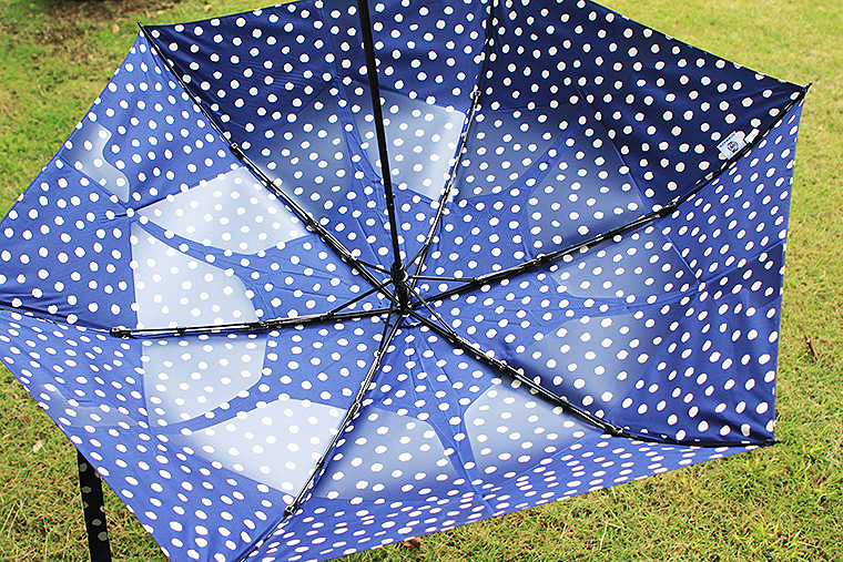 3秒でシュパっとたためるのは、ムーンバット独自の技術、傘の裏側に貼られたPET樹脂素材 特殊シートによる形態安定のおかげ(画像↑↑↑)。