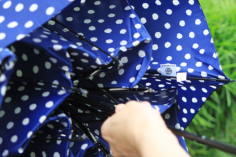 一発で水切れ、ゲリラ豪雨も耐える、日傘としても使える