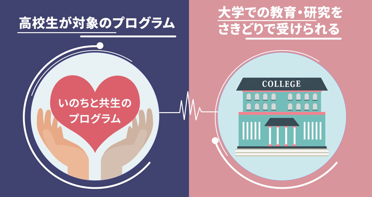 大学の授業も受講でき、高校生時代に受けた大学の授業は、入学後に大学の単位として認定され、大学でのさらなる自由な活動時間を増やすことにつなげていくという。
