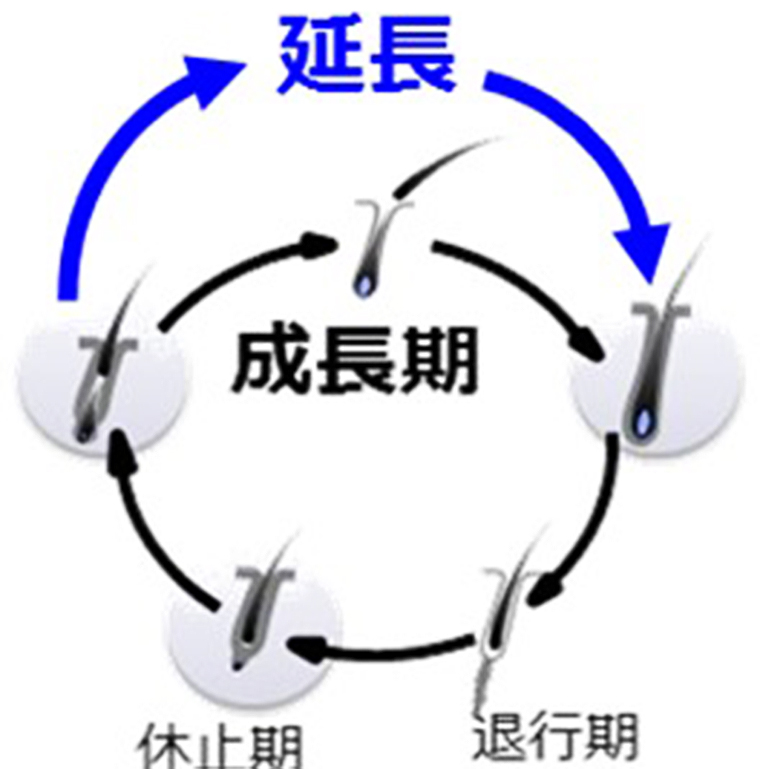 このヘアサイクルは、成長期(2~6年)、退行期(2~3週間)、休止期(3~4ヶ月)に分かれ、成長期が長ければ長いほど、髪はその分長く成長し、また太くなる。