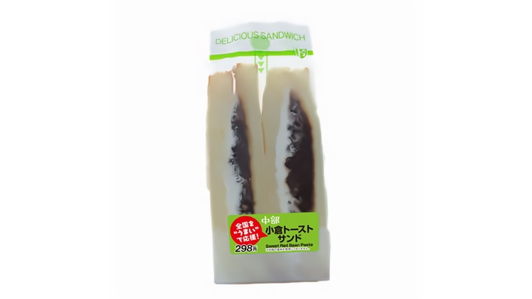 「名古屋めしで有名な小倉トーストをイメージしたサンドイッチです。厚めにスライスしトーストした食パンに、つぶあんとバターソース、ホイップクリームをサンドしました」