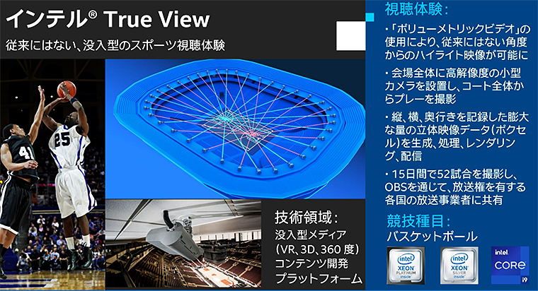 従来にはない没入型のスポーツ視聴体験を実現させるインテル True View にも注目。仕組みはこうだ。
