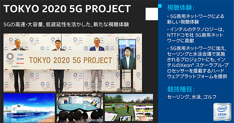 インテルは、インテル Xeon スケーラブル・プロセッサーを搭載するシステムを提供し、5Gの高速・大容量、低遅延性を生かした視聴体験を実現する本プロジェクトに貢献していく。