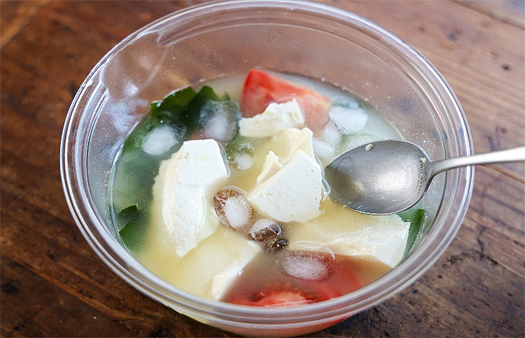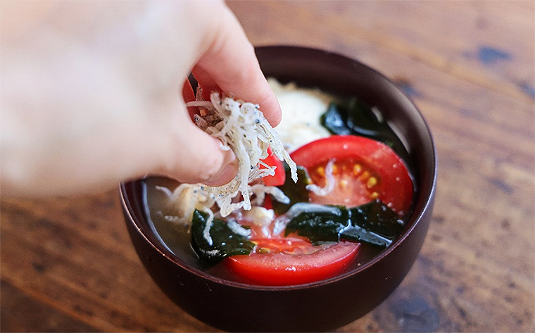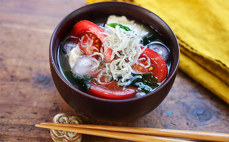 トマトとちりめんじゃこと豆腐の冷やしみそ汁