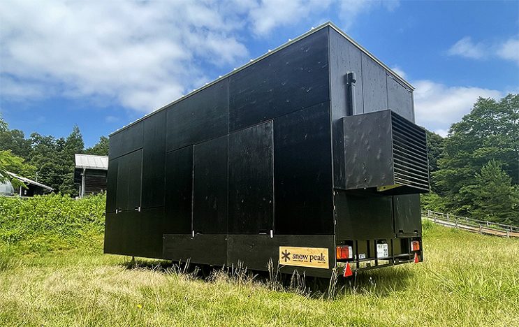これ、アウトドアブランド snow peak のモバイルハウス「住箱-Jyubako-」。