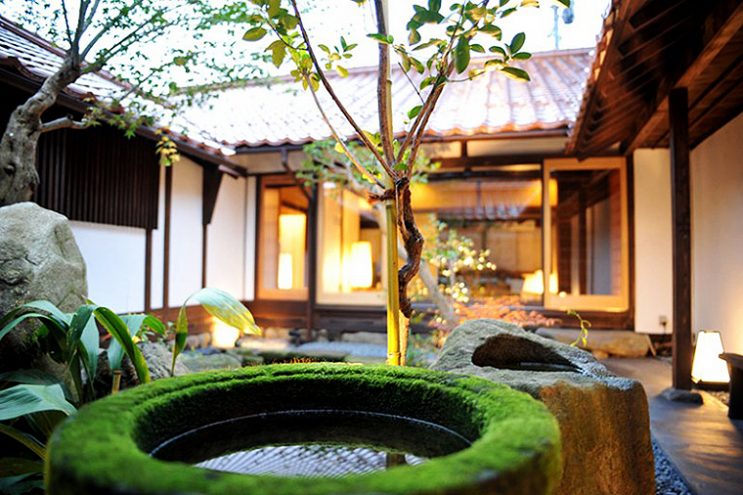 津和野町家ステイ戎丁(えびすちょう)は、明治時代に建設された長屋建築が特徴。さまざまな部屋から、中庭をのぞめる間取りに。建築当時の空気を感じながら宿泊できる。