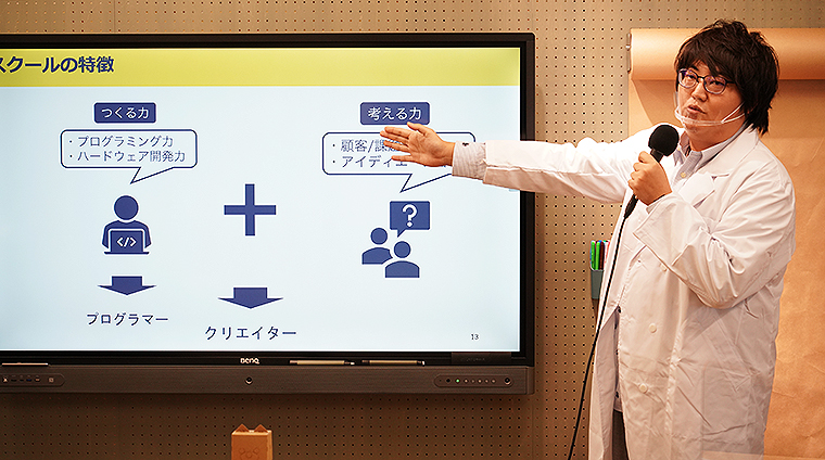慶應義塾大学 石戸奈々子 教授は、「イマジネーションしたことをどうかたちにするか、実現するか。子どもたちが、embot を通してイマジン&リアライズが発揮できる。そんなツールになることを期待している」と語った。