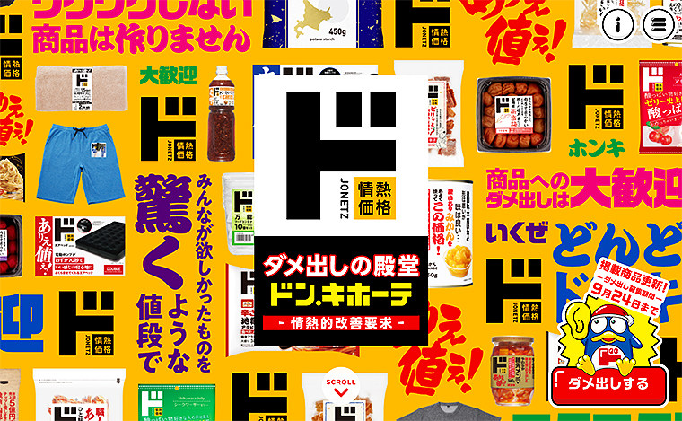 また、ファンが求めるものを具現化し、期待に応えていくべく、特設サイト「ダメ出しの殿堂」(https://jonetz.com/)を開設。「情熱価格」に対するファンからのダメ出しを募集している。