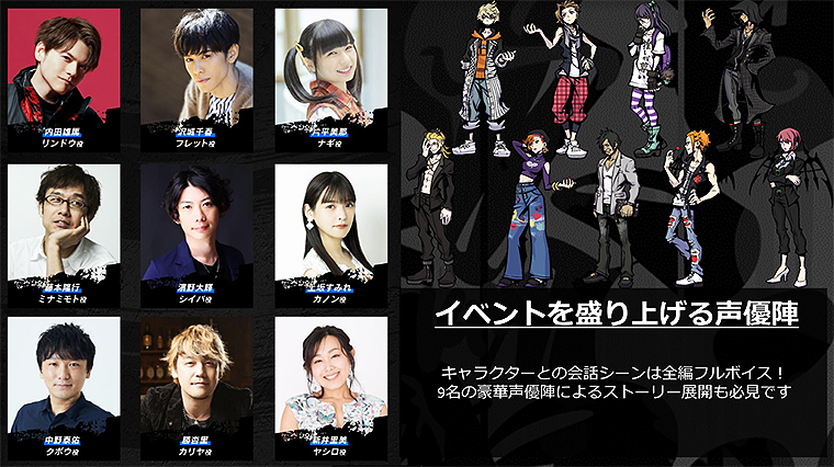 スマホから聞こえてくる声優陣の声もガチでリアル。全編フルボイスで、9名の豪華声優陣たちの声とキャラクターの絵で、ゲームを導いてくれる。