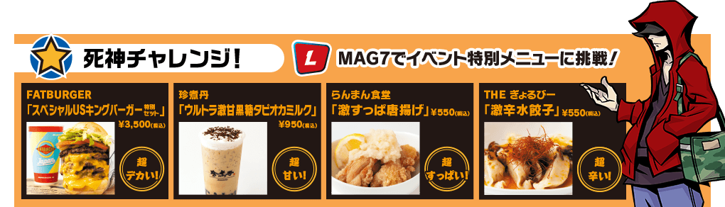 また、ゲームのひと休みにMAG7に立ち寄ってみて。ここには、イベント特別メニューがいろいろ。映える逸品もあるから、試してみて。