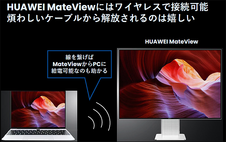 また HUAWEI MateView には、ワイヤレスで接続できることから、「わずらわしいケーブルから解放されるのがうれしい」とも。