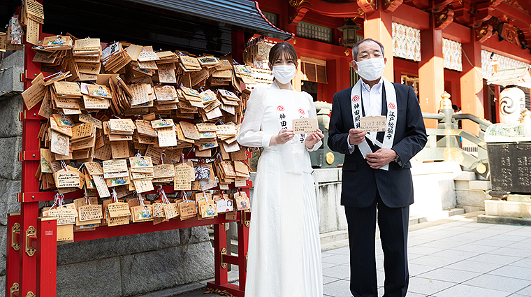 コロナ終息と国消国産の普及を祈願すべく、神田明神に絵馬とお米奉納を行った。