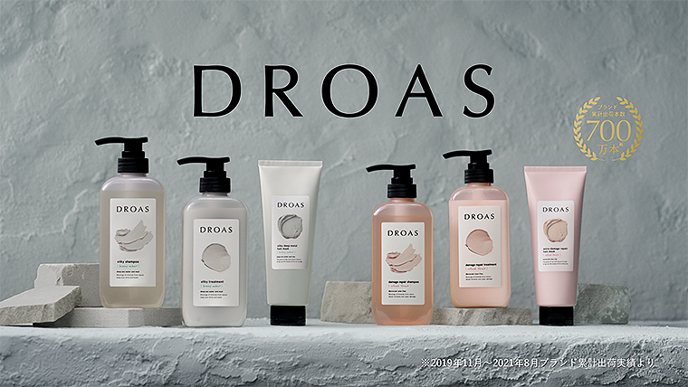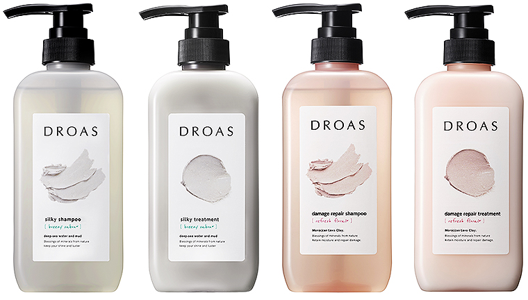 DROAS は、ミネラル豊富な泥が汚れを取り除きながら髪の内側まで浸透・補修してくれるシャンプー&トリートメント。