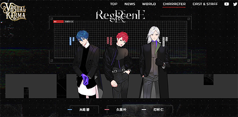 『Visual Karma』(https://visualkarma.jp/)は、ヴィジュアル系楽曲を中心としたヴィジュアル系音楽原作キャラクタープロジェクト。