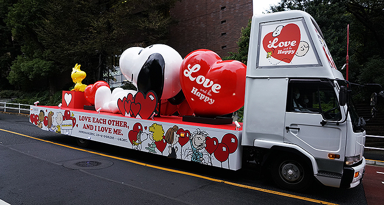 気になるのは、このスヌーピートラックが、いつどこを走っているか。
