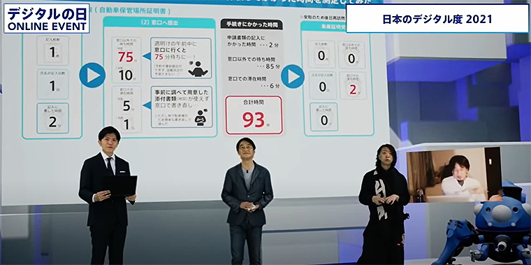 日本のデジタル化がどれくらい進んでいるのかを調査した結果をもとに、日本の「デジタル度」を発表。個人のデジタルサービスの利用状況や、行政の手続に関してのデジタル化についてなど、登壇者の皆さんからコメントをいただきます。