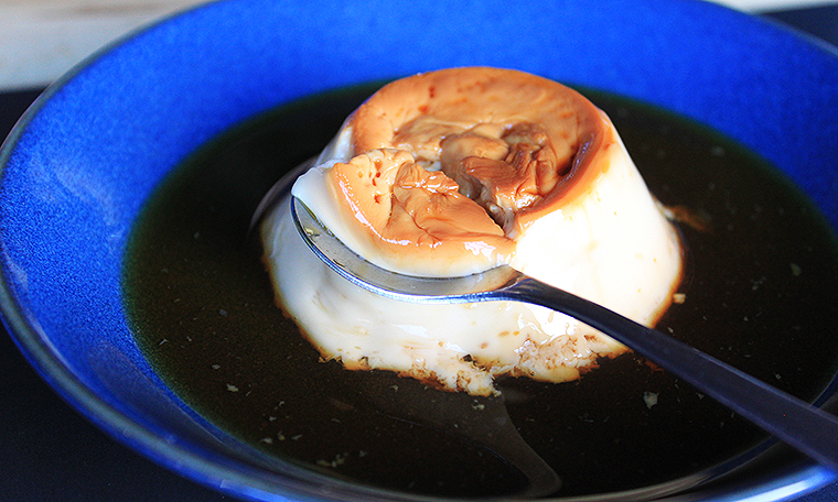 ◆ほほえみのカラメルプリン―――不安を解消する心の非常食。電子レンジ(500W)4分30秒、約40Whで調理。