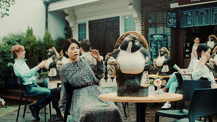 同CMでは、カフェのソイラテが突然、ロケットのごとく飛び立ってしまったり、信楽焼のタヌキに化けてしまったり、夢に出てきそうなシーンが起こる。