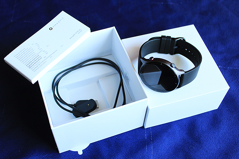 Amazfit GTR 2e の箱を開けると、日本語のマニュアルがほぼないけど、デバイスを起動して日本語を選択し、促されるままにスマホとペアリングするまで、3分前後で完了する。