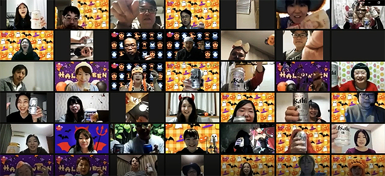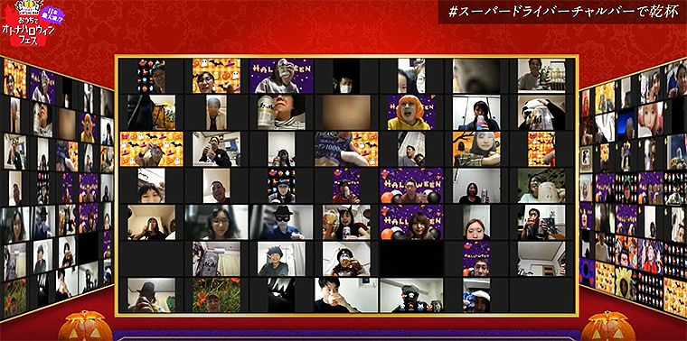 この2人がコスプレ好きなハロウィン仮装コンテストを仕切り、リアルタイム投票で、参加者みんながNo.1仮装を選ぶという“オンライン飲み会プログラム”に。