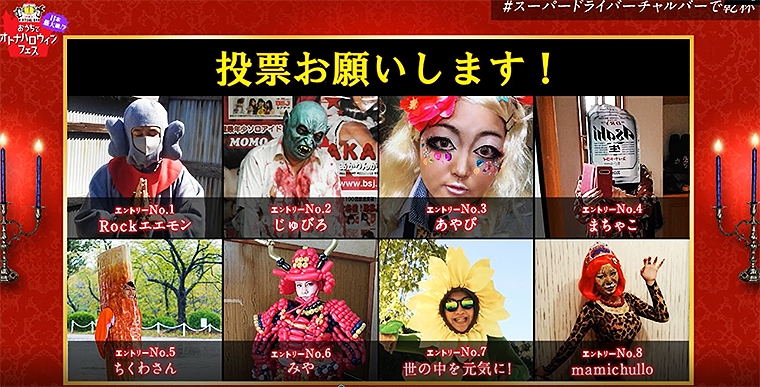 そしてハロウィンコスプレ仮装コンテストのコーナーでは、トップ8に入った8組のコスプレイヤーがアサヒスーパードライを片手にプレゼンテーション。