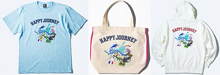 「Happy journey。ぼくも、オリジナルでパーカーやトートなど創りました。いつかまた、いろんな所に旅に出れますように……」(丸山敬太)