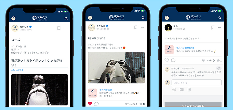 飼育スタッフの目線でとらえた「すみペン日誌」や、49羽を詳しく紹介する「すみだペンギン名鑑」など、ここでしか見られないコンテンツのほか、会員が写真を投稿したり、飼育スタッフやほかの会員との楽しいコミュニケーションも体験できるから、気になる人は「すみだペンギンファンクラブ」公式サイトをチェックしてみて↓↓↓